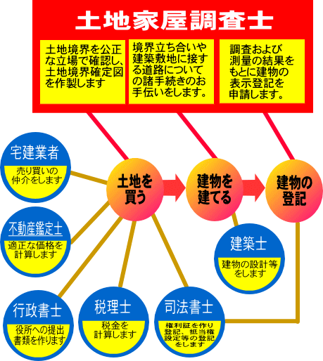 土地家屋調査士が行う測量によって、権利の登記の前提をなす表示に関する登記が行われるもので、その調査・測量には非常